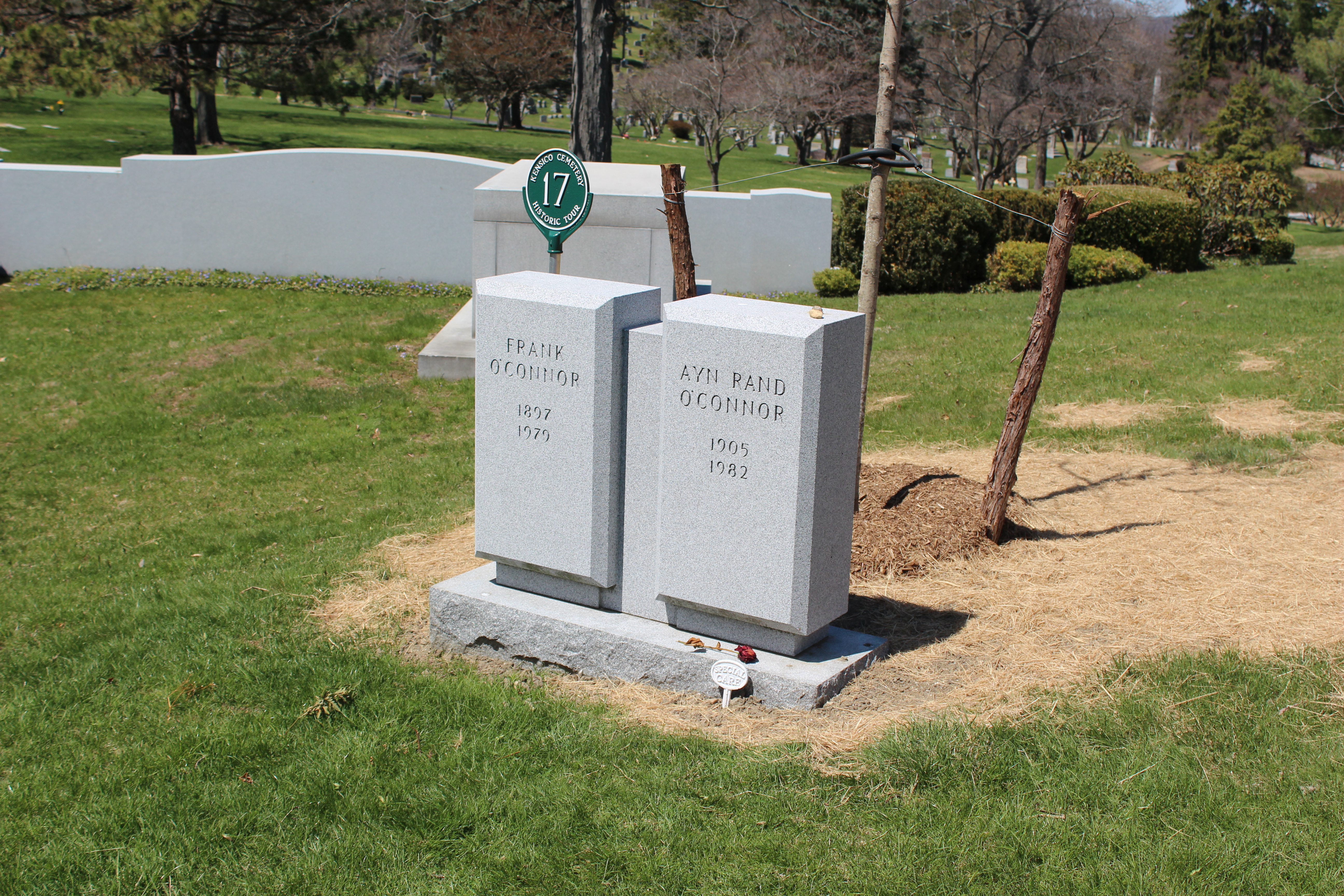 On my way back from Easter with family in Phili, I decided to visit Ayn Rand's resting place. With the help of my smartphone, GPS and the Internet I was Mrs, Ayn Rand O'Connor's Grave. I expected more, but should have known, there among the amazing tombs and monuments was the modest marker for Ayn and her husband Frank,