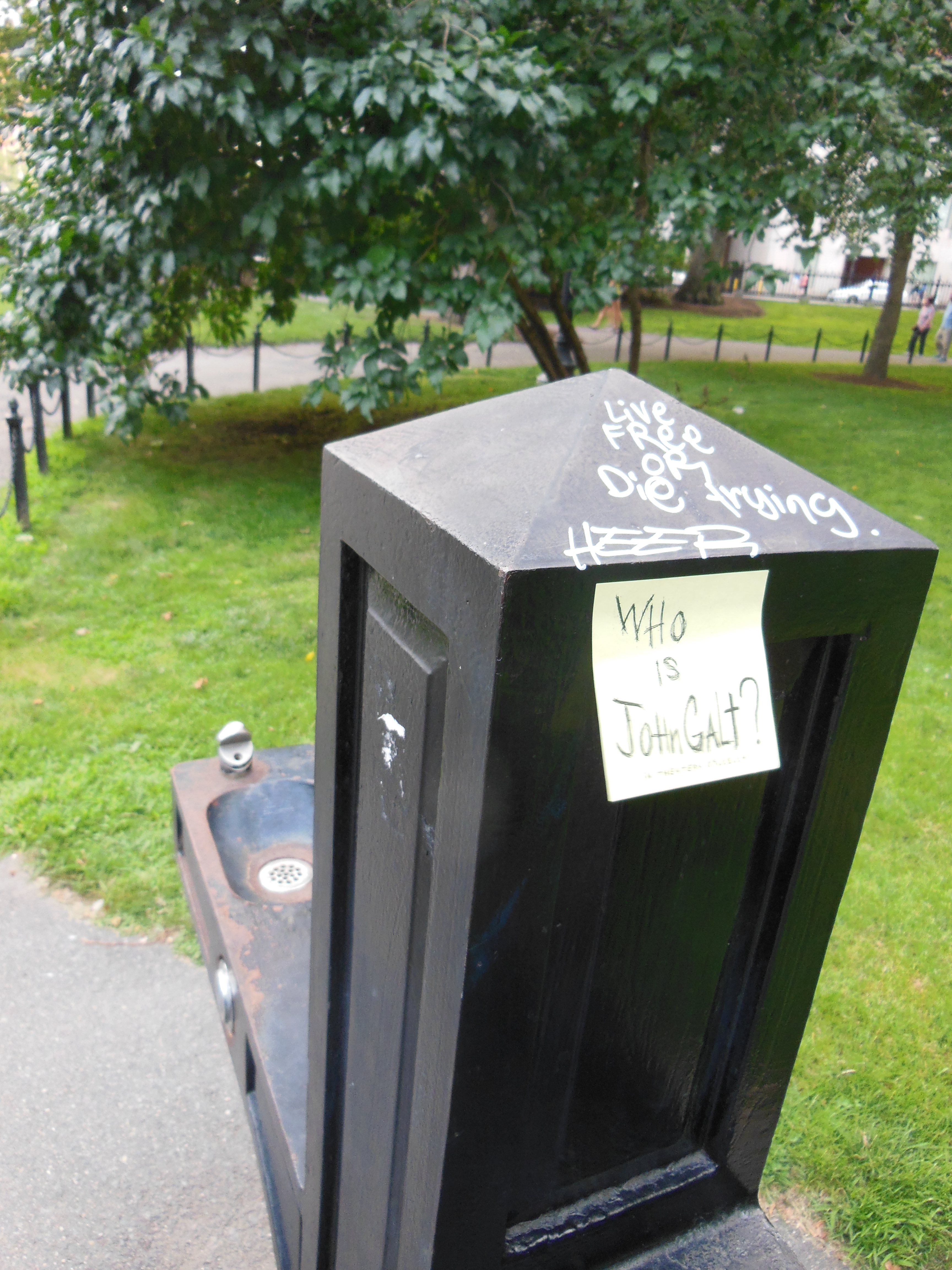 The spark of freedom still exists in Boston as graffiti on a drinking fountain.